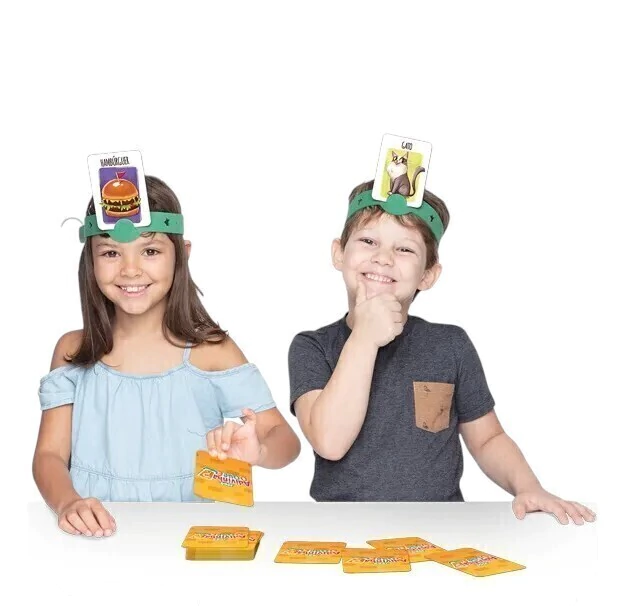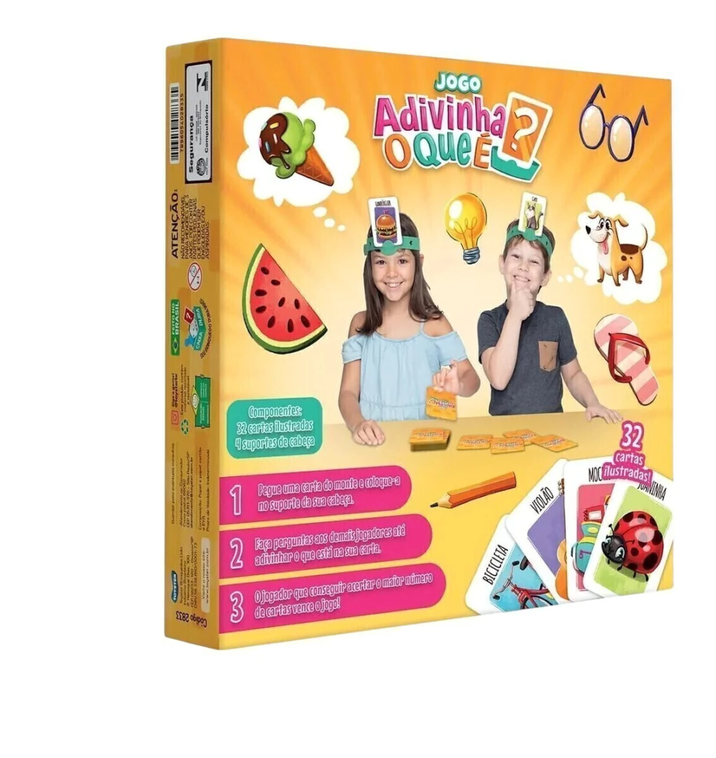 Coloque a faixa de EVA na cabeça e a carta no suporte. O jogador deve adivinhar o que está desenhado na sua carta perguntando aos outros jogadores. E eles só podem responder com sim ou não. A diversão estará garantida!