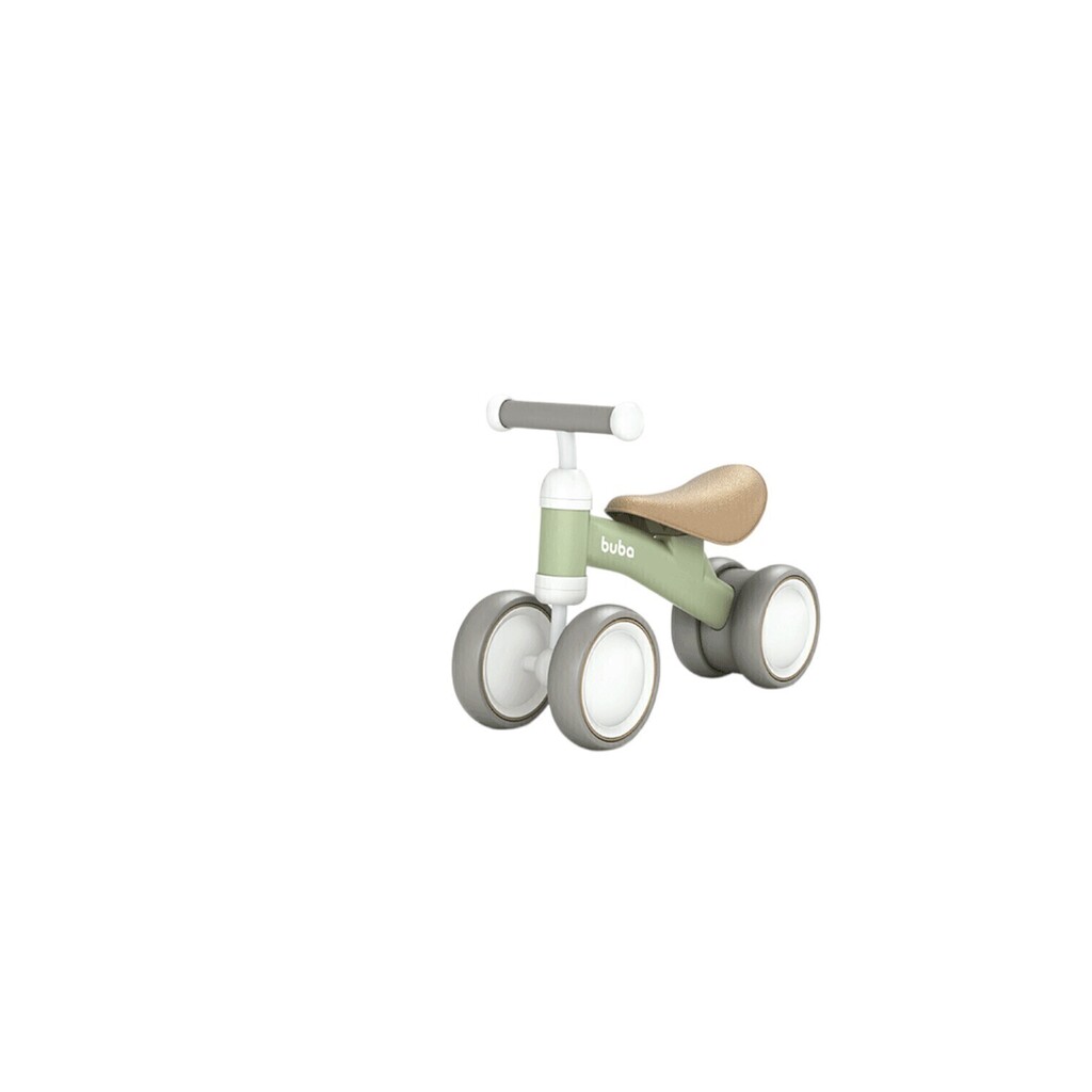 Projetada para oferecer uma experiência segura e divertida, no desenvolvimento do equilíbrio e da coordenação motora da criança, essa bicicleta possui rodas duplas na frente e atrás e não possui pedais.