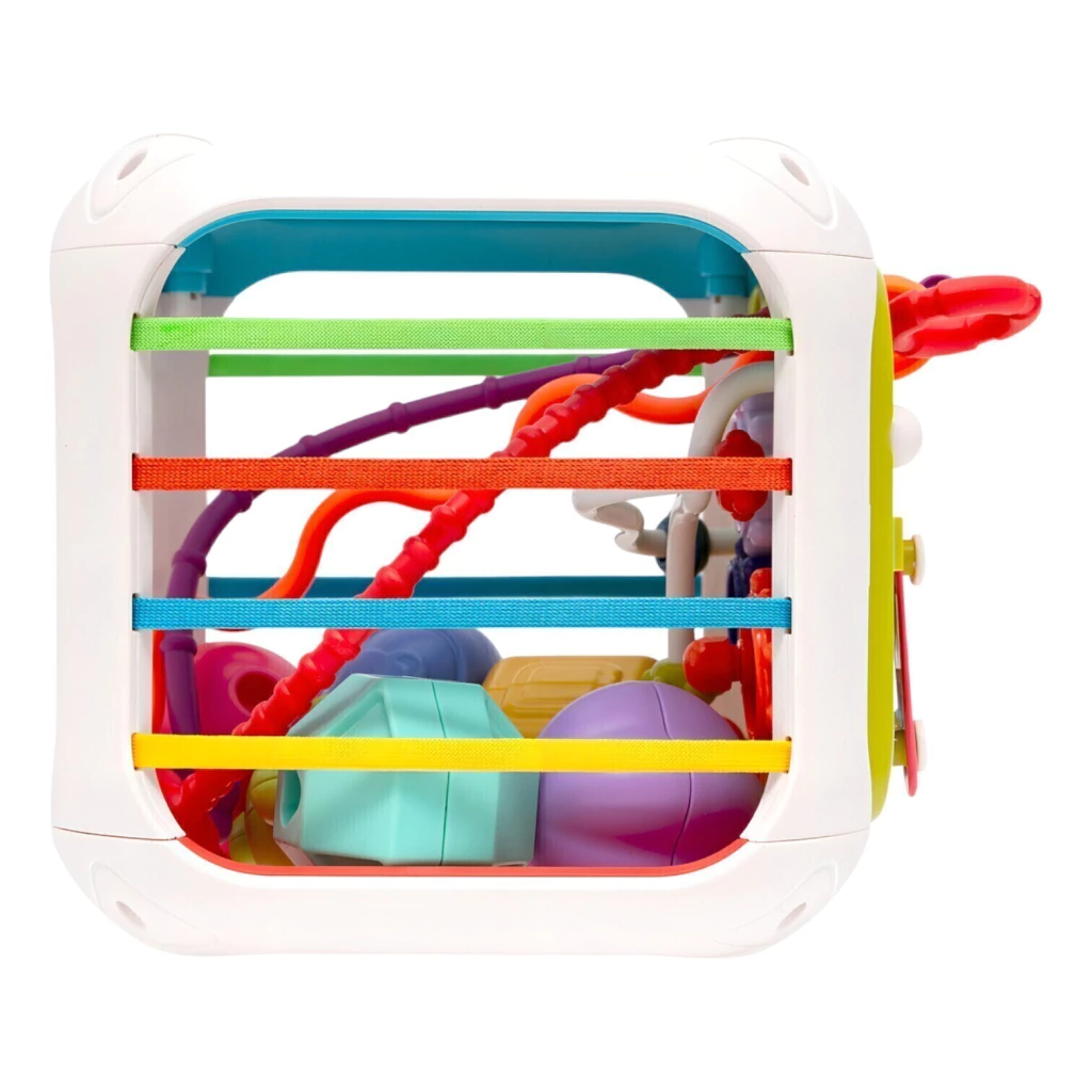 Cada face do cubo oferece uma atividade única, projetada para estimular habilidades motoras, cognitivas e sensoriais.