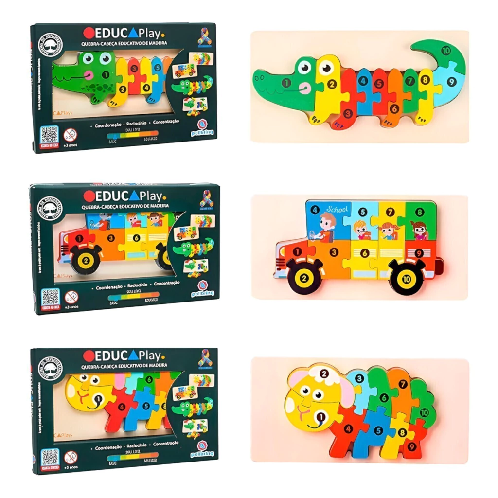 Este quebra-cabeça de madeira foi desenvolvido especialmente para estimular a coordenação motora, o raciocínio lógico e a concentração das crianças, de forma lúdica e interativa. Com peças resistentes e coloridas, é ideal para o aprendizado na primeira infância.