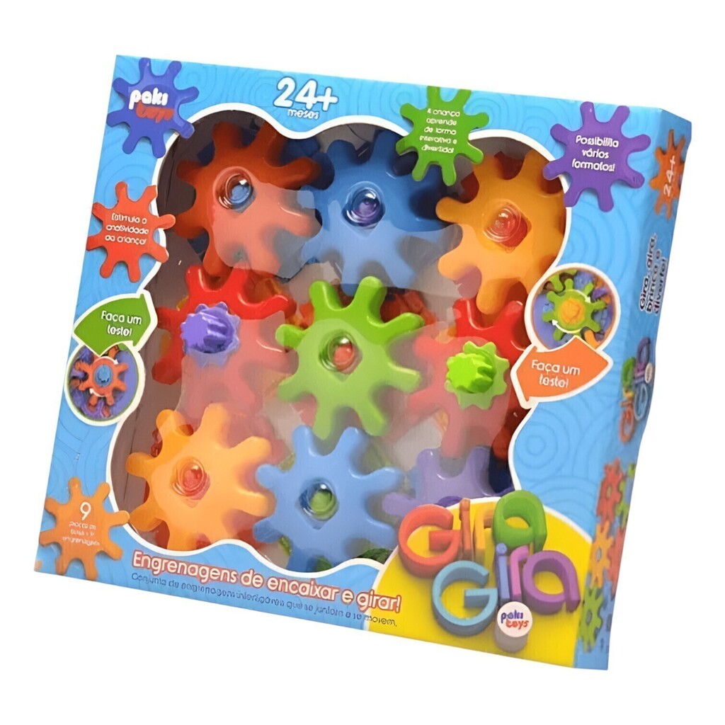 Descubra o Brinquedo Didático Engrenagens Gira Gira 9 Peças da Paki Toys, ideal para crianças a partir de 24 meses que desejam explorar e aprender de forma interativa.
