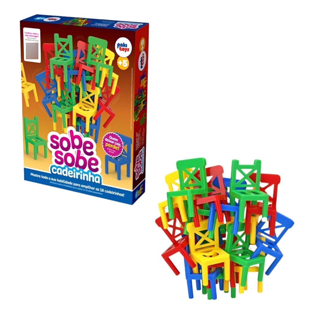 O Sobe Sobe Cadeirinha é perfeito para isso! Ele é uma solução ideal para quem busca entretenimento familiar sem complicação. Seu objetivo é empilhar cadeirinhas sem deixar cair – parece fácil, mas vai testar seu equilíbrio e coordenação!