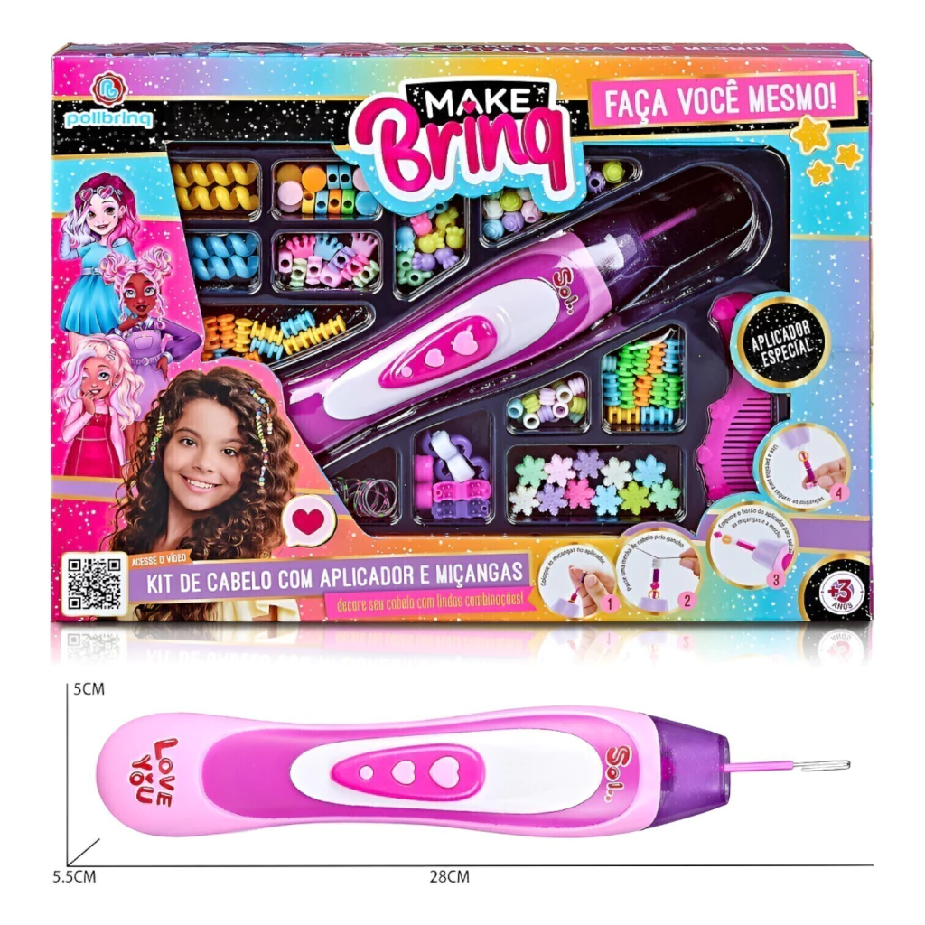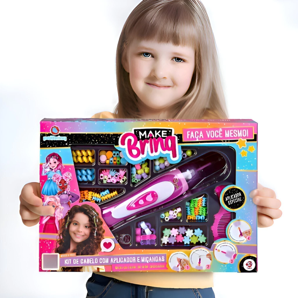 Não perca mais tempo, traga a alegria da criatividade para o mundo dos penteados das crianças. Adquira agora o Kit de Cabelo com Aplicador de Miçangas MakeBrinq - PoliBrinq e veja a magia acontecer. Transforme cada dia em um desfile de moda e criatividade!