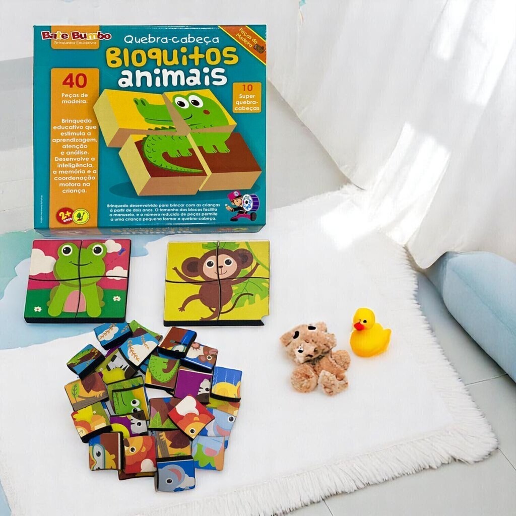 1) Quebra-Cabeça Bloquitos Animais (em madeira) - indicado +2 anos