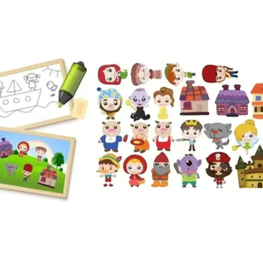 Contém também peças magnéticas com personagens, giz e canetão que irão proporcionar a criança uma deliciosa brincadeira de faz de conta, criando uma linda história com criatividade e imaginação!