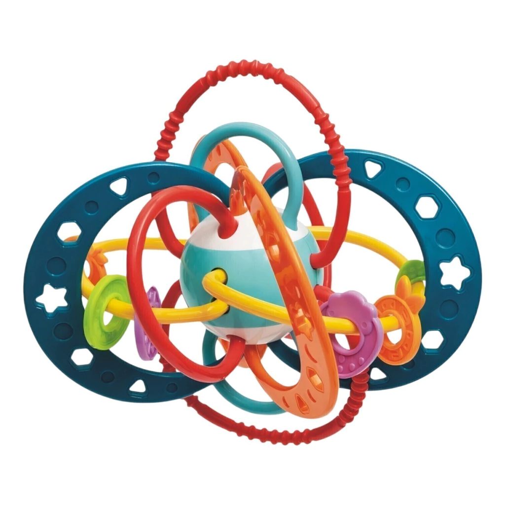 O Chocalho Space Ball é perfeito para entreter, desenvolver os sentidos do bebê e massagear a gengiva. Macio e com arcos flexíveis, estimula o tato, auxiliando o pequeno a descobrir novas formas. Seu design é leve, fácil de segurar e super colorido, ideal para atrair a atenção dos pequenos!
