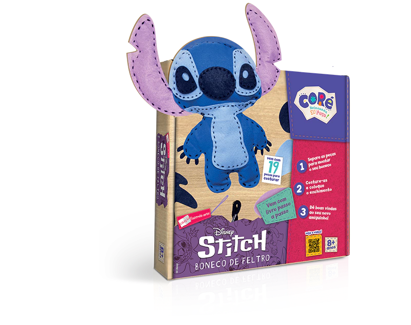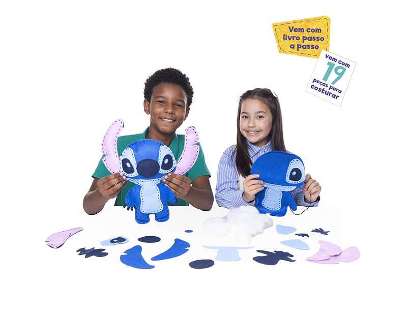 Crie um boneco super fofo do Stitch com este livro que ensina passo a passo como costurar. O kit vem com o feltro, linha, agulha e enchimento inclusos.