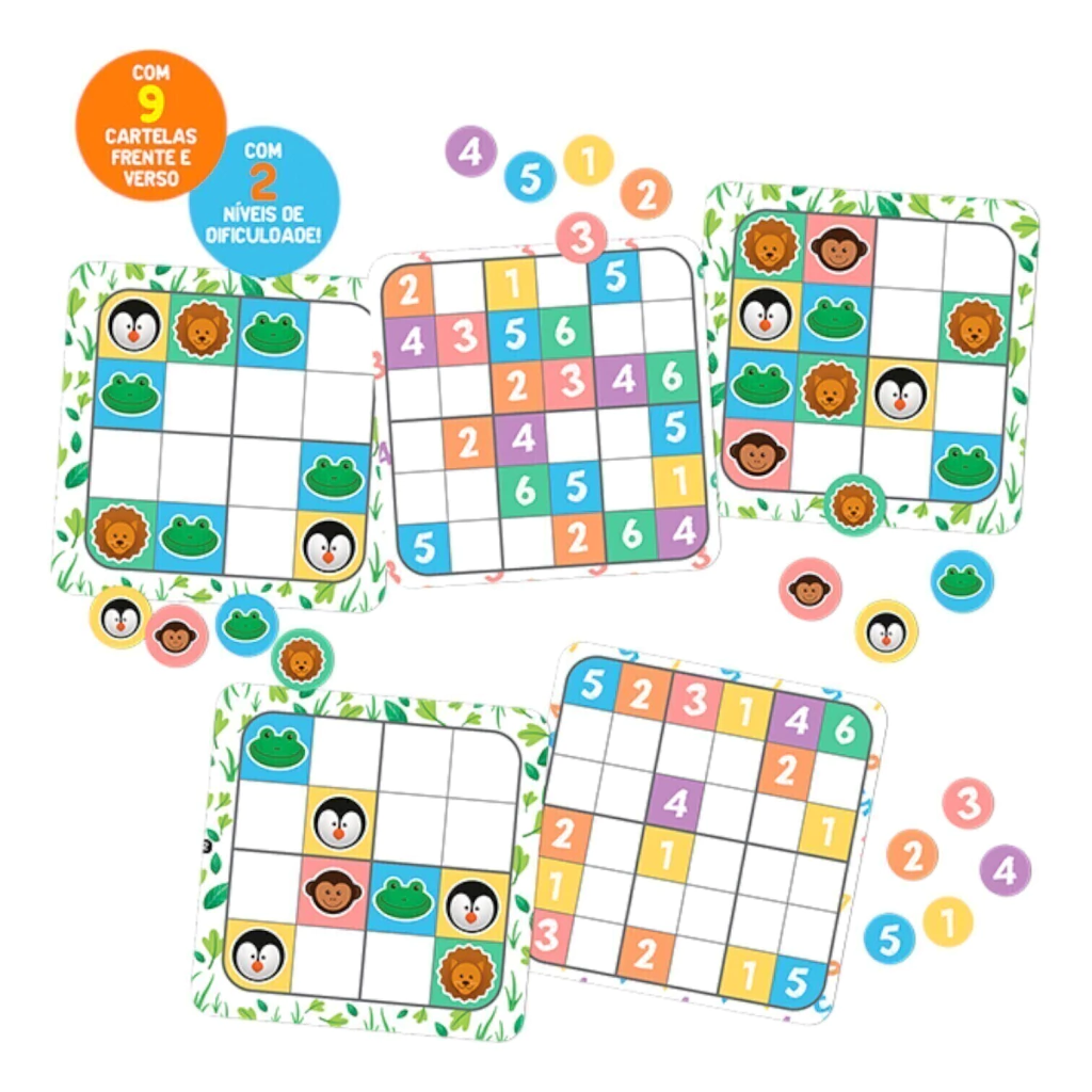 Com 18 desafios diferentes e 2 níveis de dificuldade, o Sudoku Divertido estimula as crianças a desenvolverem o raciocínio lógico, a concentração e a paciência enquanto se divertem.