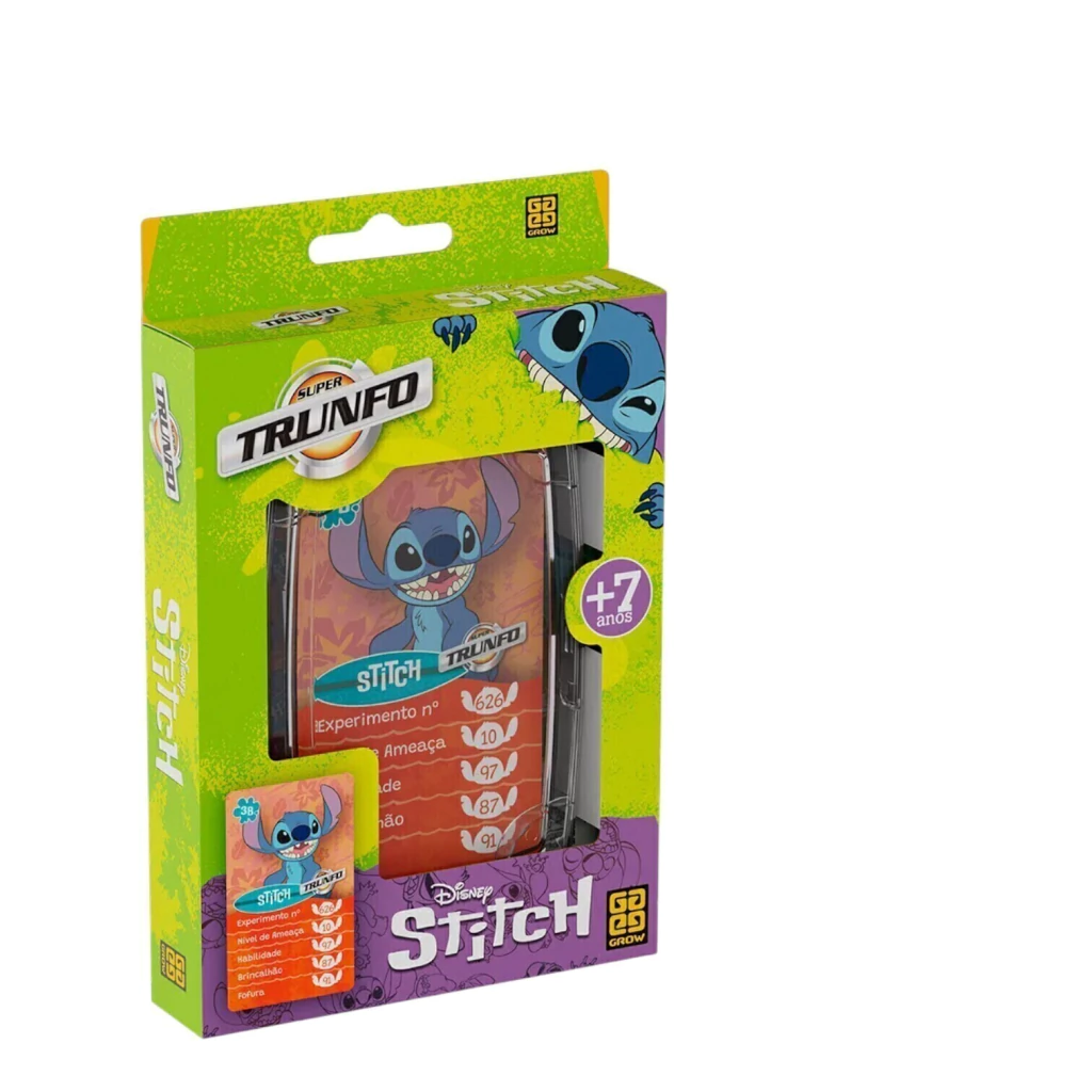 - Interatividade: Composto por 32 cartas ilustradas com personagens do universo Stitch, cada uma com características únicas para comparação.