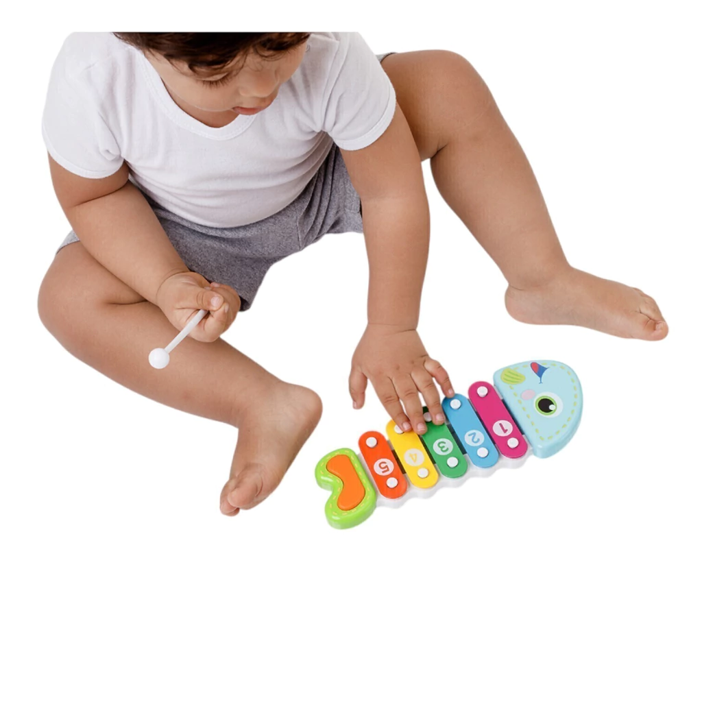 O Xilofone Peixinho da Buba vai divertir, entreter e estimular os sentidos dos bebês. Além de muita diversão, contribui para o desenvolvimento de habilidades cognitivas, motoras e sonoras das crianças. Suas cores chamativas e formato em peixinho são ideais para os pequenos, ao tocar as teclas com o bastão, irão se encantar com os diversos sons.